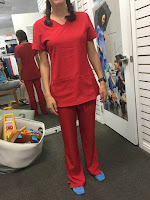 Yesterday I made a visit to my patient and brought Ellie along in her cute red scrubs. She was so great. She asked my patient's wife if she could practice taking her blood pressure and the wife was more than happy to allow her. My poor patient and his wife are so lonely - they haven't been able to leave their facility in six months and aren't allowed to get visitors either. I think if the devil arrived at their front door they would welcome him in. Ellie had a great bedside manner and seemed confident, even though later she said that she was nervous. I think we have a future nurse on our hands!!!